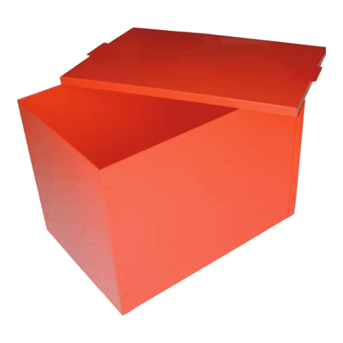 - Construction acier robuste : bac en tôle acier peint (rouge haute visibilité) offrant une excellente résistance mécanique et une bonne tenue dans le temps en intérieur/extérieur.