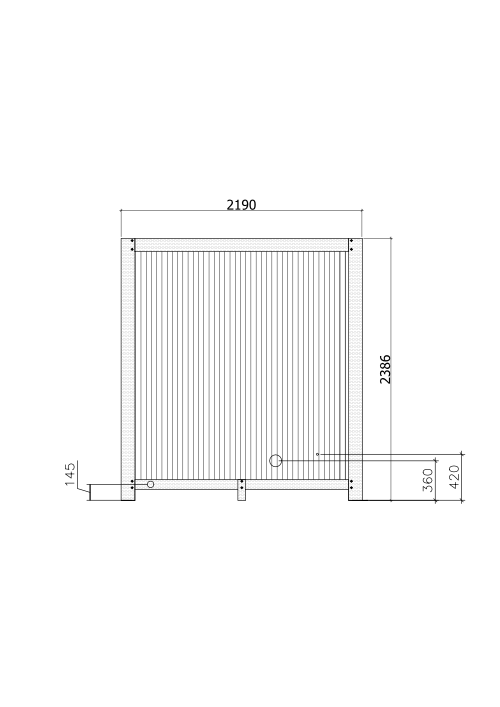 Sa structure, en panneaux sandwich EPS de 5 cm (isolation thermique et acoustique) et toit renforcé en PUR 40 mm, garantit résistance et durabilité face aux intempéries. Le sol en fibrociment 14 mm avec finition PVC assure une grande facilité d’entretien. Les portes en acier sont équipées de serrures de sécurité avec double clé pour un accès contrôlé. L’éclairage LED, les prises de courant, ainsi que la fenêtre PVC (60 x 40 cm) pour la lumière naturelle et la ventilation, rendent l’expérience encore plus agréable.
