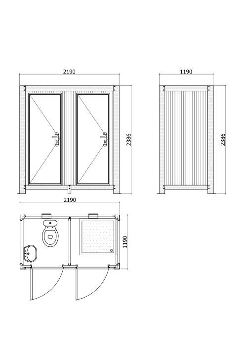 | Portes acier, 2 clés/cabine | 65 x 190 cm |