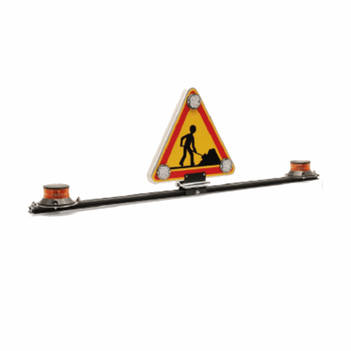 Composé aussi de gyrophares halogène ou à leds, et d’un triangle 500mm avec le symbole du travailleur.