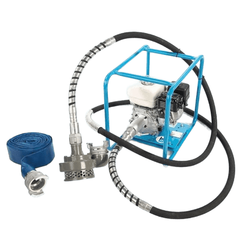 - Tuyau de refoulement 10 m à plat avec raccord incendie à dégagement rapide.