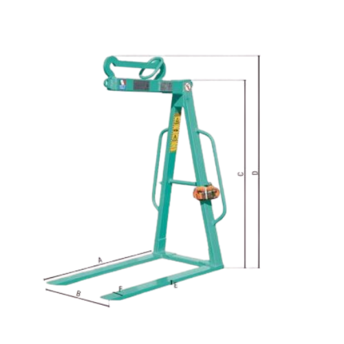 Le lève-palettes MBL-R20H s’accroche au crochet de la grue avant le début des opérations. Une fois les fourches engagées sous la palette, la charge peut être levée puis déplacée vers les étages, terrasses ou zones de stockage en hauteur. La conception de l’appareil aide à garder la palette stable pendant les déplacements.