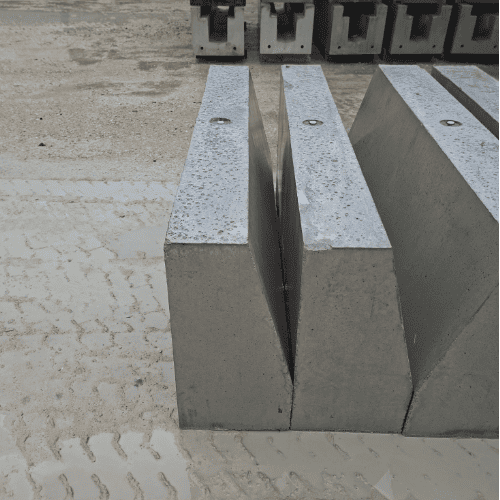 Chaque module de mur béton présente une largeur en pied de 350 mm pour une stabilité optimale sur sol compacté ou enrobé. Ainsi, la hauteur de 700 mm est répartie avec 200 mm de large au sommet et 500 mm de haut à la largeur de 350 mm : une face est verticale, l’autre se coupe en angle au-delà de 200 mm de haut, formant un profil en biseau. De plus, la longueur unitaire de 1 700 mm, associée à trois pieds de stabilité, permet un alignement précis et une bonne répartition des charges. Par ailleurs, ces éléments peuvent être utilisés en série pour constituer des murs continus, des séparateurs de voies, des protections de zones de stockage ou des barrières anti-chocs. Enfin, leur forme est étudiée pour rester stable sans ancrage complexe, tout en étant manipulable à l’aide de fourches ou élingues adaptées.