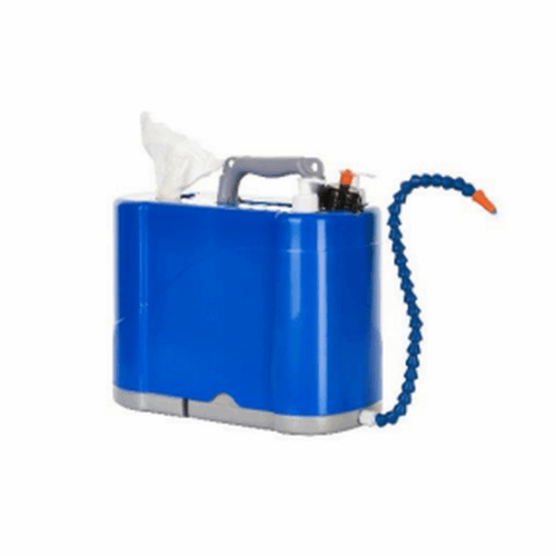 Le SHOULDERSINK est un véritable poste d’hygiène mobile pour les mains, le bloc contient un réservoir d’eau, un réservoir de savon, un autre d’éthanol, du papier et une poubelle.